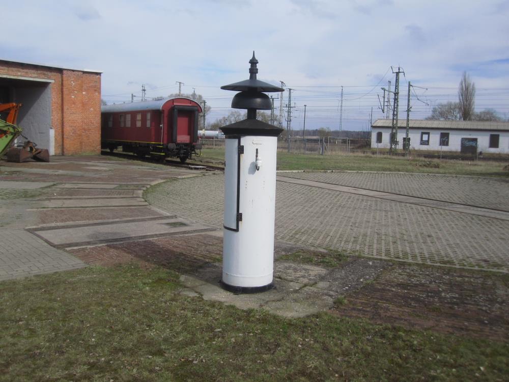 Auf dem Gelände des ehemaligen Lokschuppens 1 haben wir ein historisches Läutewerk aufgestellt. Es diente früher in Betriebsstellen der Bahn dazu, über eine Art Morsecode, der mittels Induktionskurbeln erzeugt wurde, die Abfahrt von Zügen bei der benachbarten Betriebsstelle (z.B. im nächsten Bahnhof) anzukündigen. Diese Art von Benachrichtigung verlor im 20. Jahrhundert allerdings an Bedeutung, als die Bahn ihr eigenes Telefonnetz etablierte. Dann wurden Zugmeldungen mündlich durchgegeben.