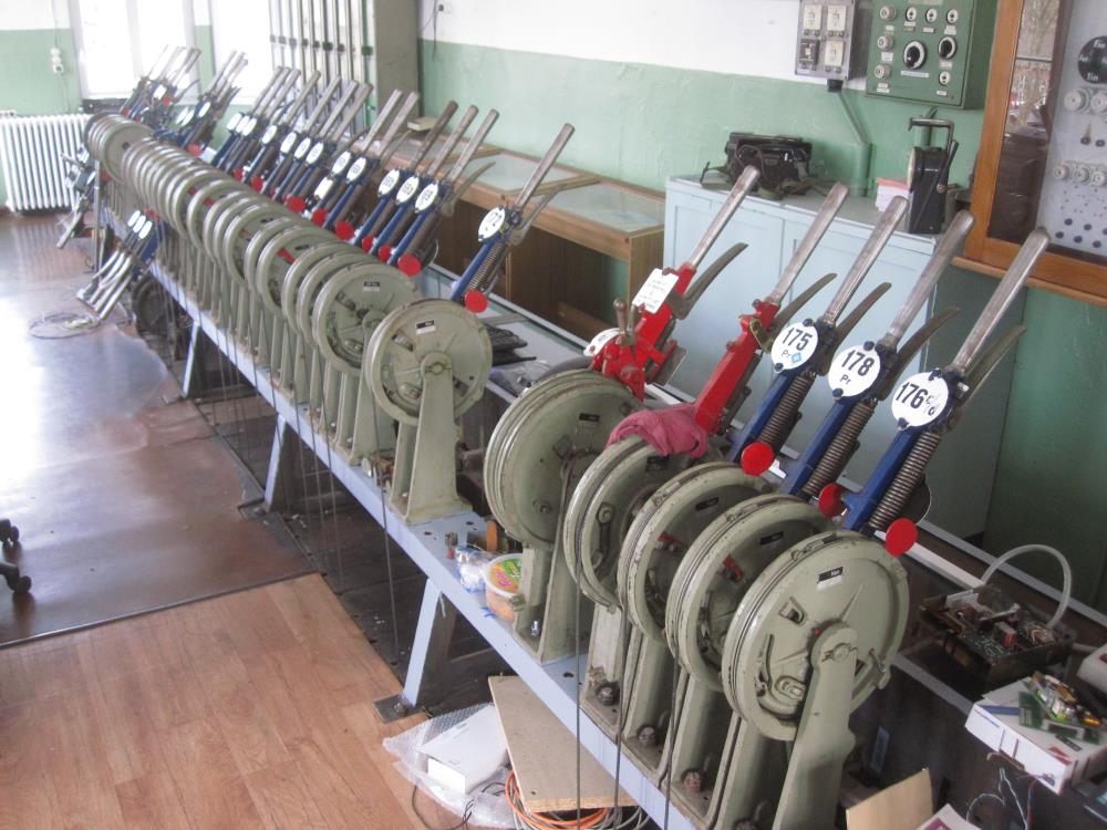 Diese Bilder zeigen das Innenleben des Stellwerks in der oberen Etage. Hier befinden sich diverse Hebel, die früher und teilweise heute noch dem Stellen von Weichen und Signalen dienen.