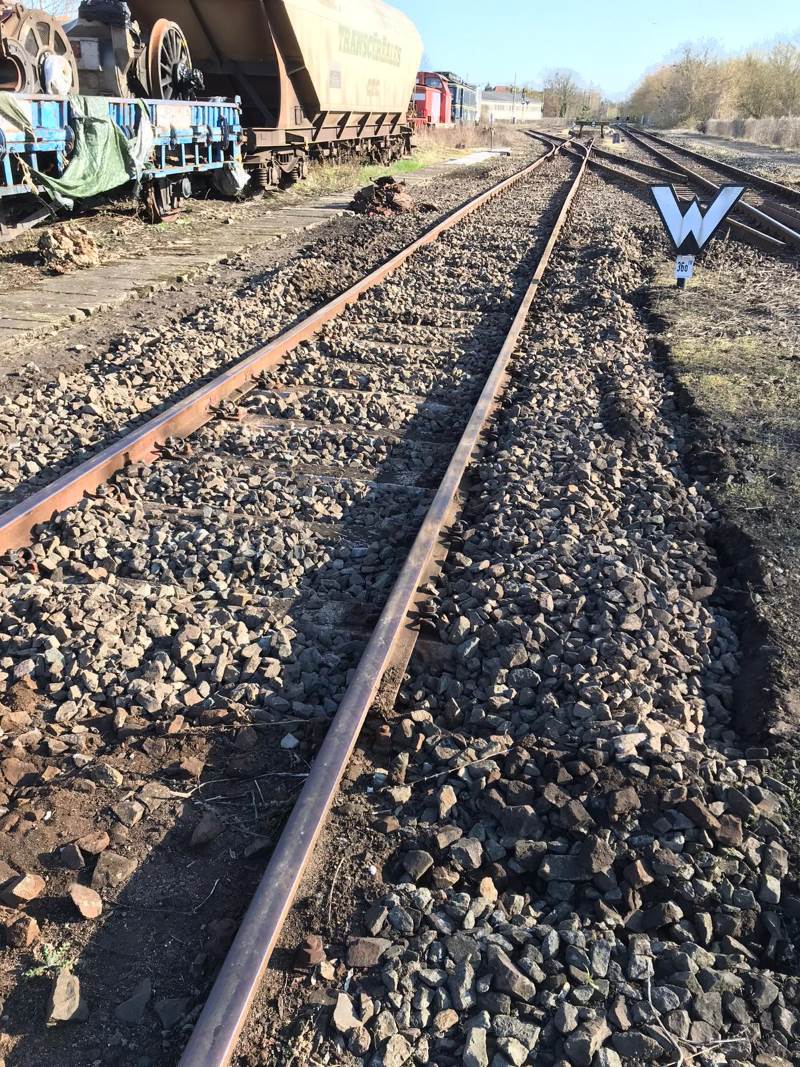 Eine Gleisbaustelle ist auch in Arbeit. Einige Schwellen unseres Gleises 36°b und 1w, das am Stellwerk vorbei bis zum Bahnhofsvorplatz führt, waren teilweise abgängig. Die aus Corona-Gründen leider verlängerte Winterpause konnte nun gut genutzt werden, um die Schwellen zu wechseln und das Gleis neu zu stopfen. Damit wird ein sicheres Befahren sichergestellt, wenn die Saison hoffentlich bald wieder losgeht.