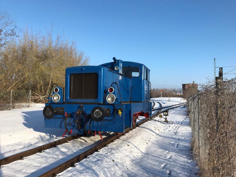 Im Rahmen der Rangierfahrten wurde auch die Magdeburger Bahnhofsseite befahren. Folgendes Bild zeigt eine unserer Dieselloks V23 auf dem Weg dahin.