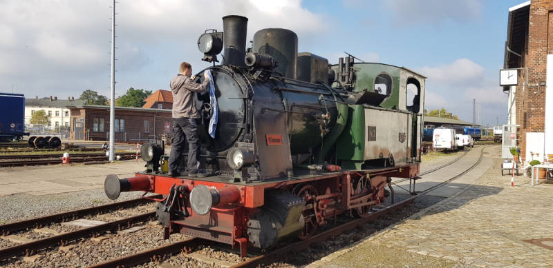 Natürlich waren auch die Fahrzeuge und Anlagen für die Veranstaltung vorzubereiten. Loks waren zu putzen und mit Vorräten zu versehen, Grills, Bänke und Tische vorzubereiten und Essen und Trinken einzukaufen, zu backen und zu kochen. Unser besonderer Dank gilt an dieser Stelle einmal mehr der Feuerwehr Wittenberge. Die Kameraden haben wieder ihre köstliche Erbsensuppe gekocht und damit unsere Gäste versorgt.
