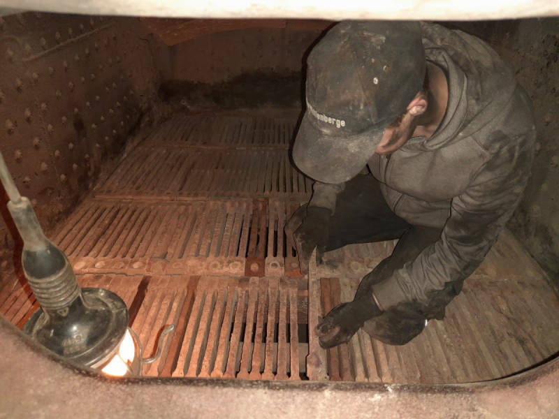 Nachdem wir unser Herbstfest vor zwei Wochen gut aufgegleist hatten, stehen nun erste Wartungs- und Instandhaltungsarbeiten an, um unsere Exponate gut über den Winter zu bringen. Zunächst widmeten wir uns der Dampflok 50 3570. Bei den letzten Einsätzen hatten sich einige Roststäbe in der Feuerbüchse verzogen und mussten gegen neue ausgetauscht werden. Das ist eine Arbeit, bei der man keine Angst vor Schmutz haben darf. Danach lohnt sich das Duschen auf jeden Fall.