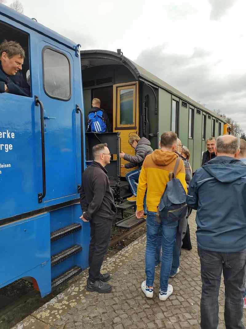 Bereits im Laufe der vergangenen Woche hatten einige unserer Fahrzeuge etwas Auslauf. So bespannten unsere beiden Dieselloks der Baureihe V22 einen kurzen Sonderzug durch den Wittenberger Hafen. Anlass war die Verabschiedung eines Eisenbahners aus dem aktiven Dienst.