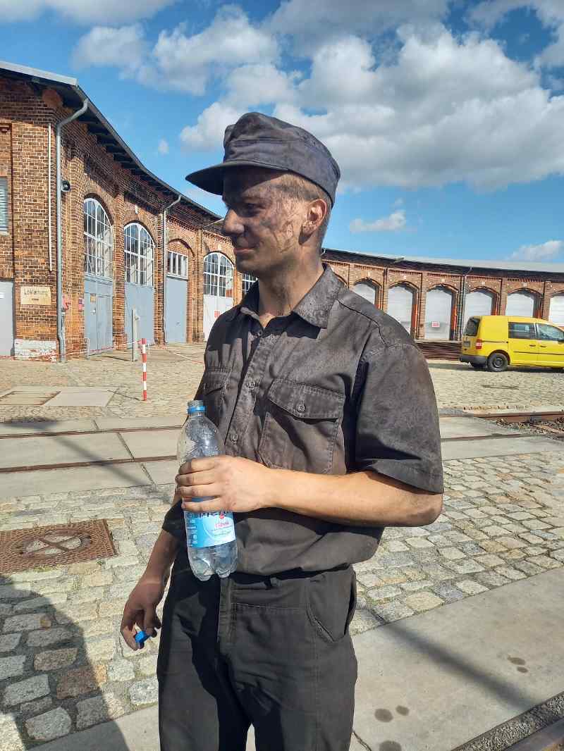 Allerdings ist die Aktion nicht ganz spurlos an dem Kollegen vorbeigegangen und wir freuen uns für ihn, dass es im Lokschuppen funktionierende Duschen gibt: