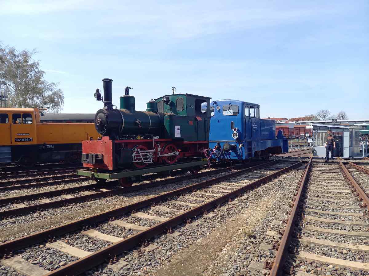 Außerdem wurden einige Exponate an andere Stellen rangiert, damit wir Ihnen zu unserem Fest ein paar neue Motive bieten können. So durften ausnahmsweise einmal die Schmalspurlokomotive und die Dampflok 50 3685 an die frische Luft.