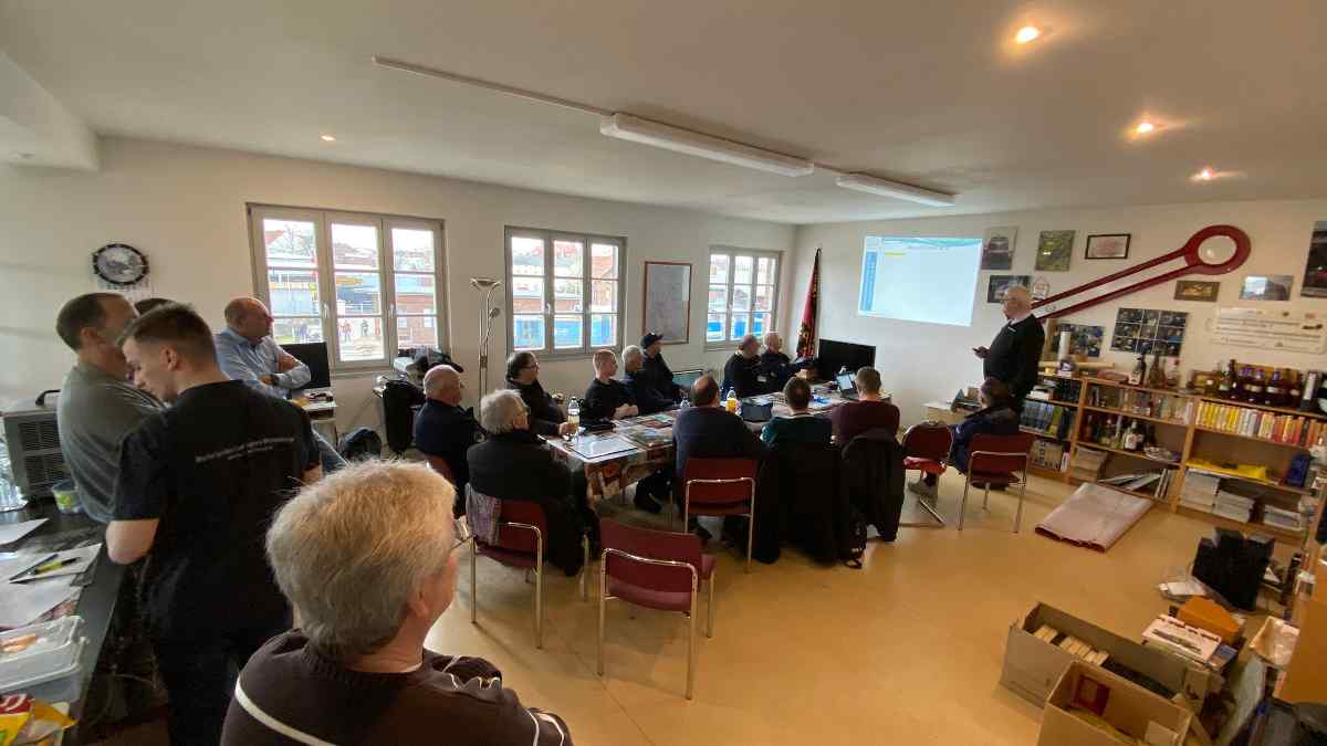 Auch die Aktiven des Vereins mussten vor der Saison ihre theoretischen Kenntnisse auffrischen. Hierzu wurde eine Schulung durchgeführt, um unter Anderem die Signale der Bahn oder das Vorgehen beim Rangieren zu besprechen.