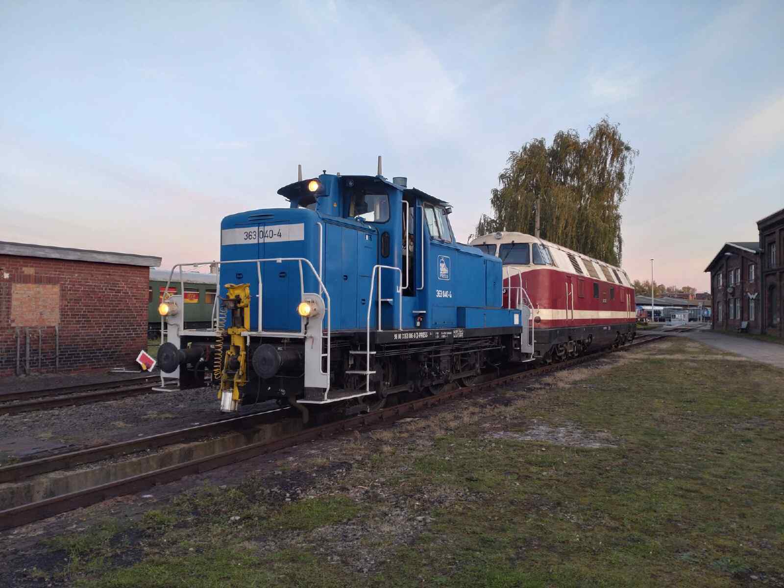 Am vergangenen Wochenende haben wir standesgemäß den kommenden Saisonabschluss unseres Museums mit einer Veranstaltung eingeläutet, bei der sich alles bewegte, das in unserem Museum aus eigener Kraft fahren kann. Dazu gehörten unsere Dieselloks 320 001, 118 748, die Dampflok Emma, unsere Rangierloks und – ganz neu im Einsatz – unser Lokomotor aus dem Hause Breuer. Star der Veranstaltung war aber sicher die Dampflok 86 1744 der Press-Gruppe, die im besten Pflegezustand für Führerstandsmitfahrten zur Verfügung stand. Außerdem hatte die Firma Lok OST uns freundlicherweise eine Diesellok der Baureihen V100 zur Verfügung gestellt, die als Ausstellungsobjekt und bei den Paradefahrten jeweils gegen 14:00 Uh am Samstag und Sonntag zu bewundern war. Danke nochmal an beide Firmen, die unser Fest mit ihrer Teilnahme bereichert haben.