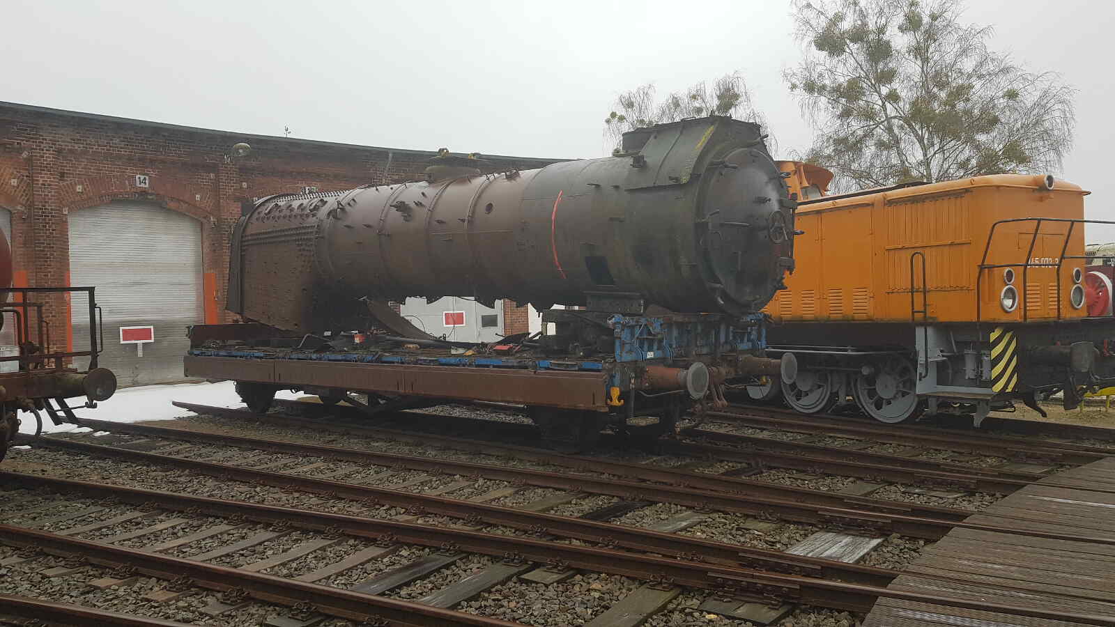 Jetzt fragen sich wahrscheinlich viele, was wir denn wohl mit einem Mobilkran machen wollen. Nun, die Antwort steht schon vor unserem Lokschuppen. Mittelfristig soll unser Ersatzkessel wieder auf eine Dampflok gebaut werden.
