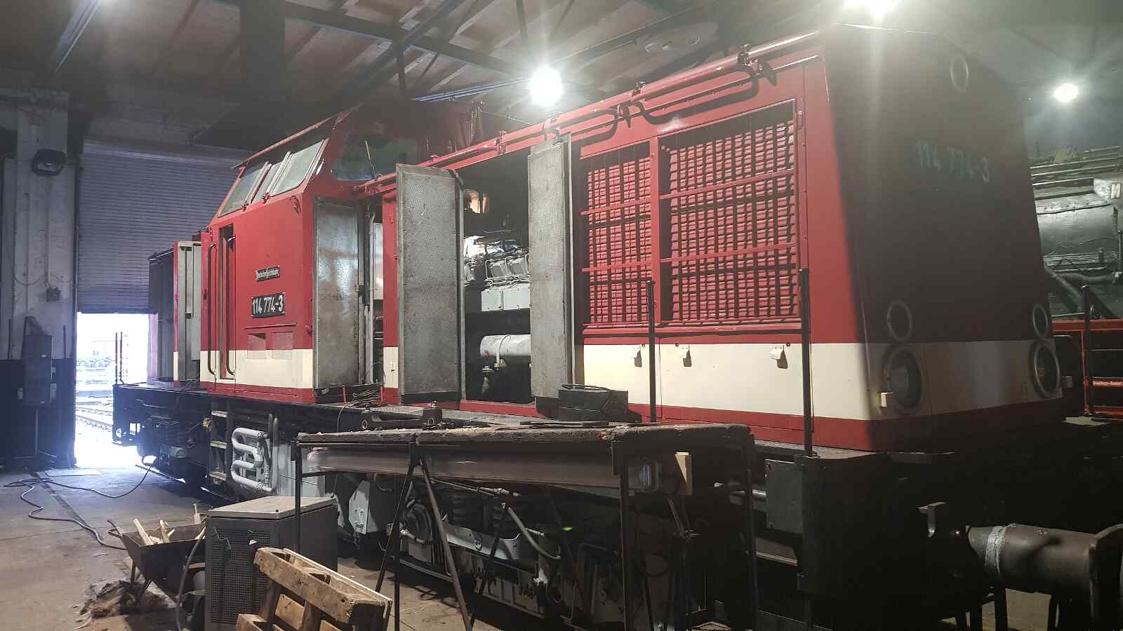 In Arbeit ist auch noch unsere Diesellok der Baureihe V100. Hier sind noch Restarbeiten zu erledigen. Insbesondere sind noch die Tanks und Kraftstoffleitungen zu spülen und die Kraftstofffilter zu ersetzen, denn der alte Treibstoff in den Tanks zersetzt sich wegen der biologischen Anteile leider schneller als gedacht und verklebt alles auf seinem Weg.