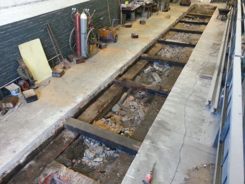 Bereits an den beiden letzten Wochenenden berichteten wir über die Bauarbeiten, besser gesagt die Abbrucharbeiten an unserem Lokschuppengleis 1. Hier wurde unter der Woche die Unterkonstruktion soweit hergerichtet, dass nun neue Schwellen eingebracht werden können. Diese müssen jedoch erst mühsam eingekürzt werden, damit sie in die vorhandene Anlage passen. Das nächste Bild zeigt die Situation mit ersten neuen Schwellen, denen noch weitere folgen werden, damit sie die neuen Schienen tragen können.