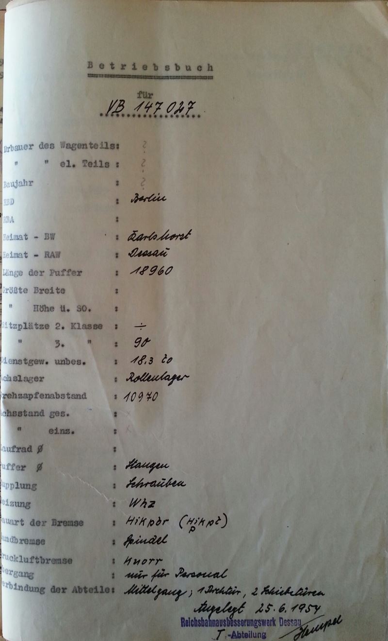 Auch gehen die Arbeiten an unserem Beiwagen VB 197 805 weiter. Der Verein wünscht sich, das Fahrzeug wieder für den öffentlichen Verkehr herrichten zu können. Dazu wurde nun erst einmal das Betriebsbuch gesichtet, denn ohne dieses Papier, das eine ähnliche Funktion wie der Fahrzeugbrief eines Autos hat, wäre eine Neuzulassung administrativ sehr schwierig und aufwändig.