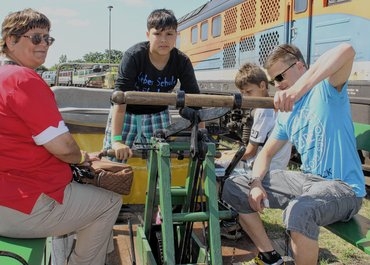 ![]() Für Leute mit Muskelkraft: Fahrten mit der Draisine. |