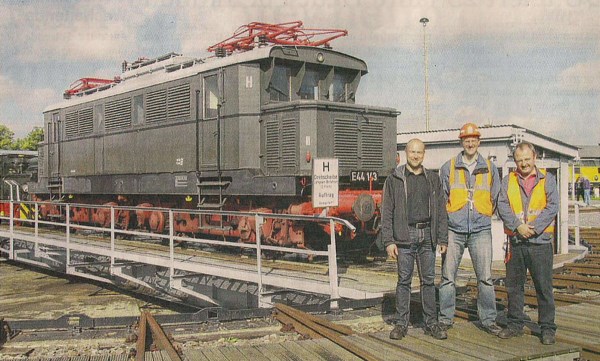 Seit gestern steht das rollfähige Ausstellungsstück als Dauerleihgabe im Wittenberger Lokschuppen. "Die Baureihe E44 war eines der Urgesteine der Elektrifizierung der Eisenbahn in Deutschland", sagt Dirk Endisch vom Verein Historischer Lokschuppen.