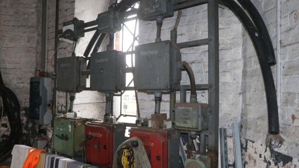 Blick auf die Schaltkästen im Wasserturm. Die Technik stammt noch aus DDR-Zeiten. |