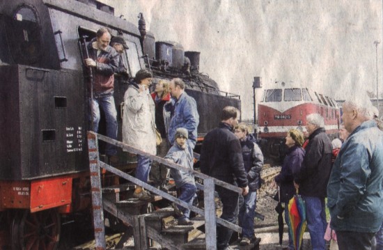 Doch auch die anderen Angebote am Lokschuppen faszinierten die Besucher. "Die Kinder lieben vor allem die Draisine. Die ist wohl nicht so schnell und macht auch nicht so viel Krach", hatte Burkhard Bohn beobachtet. Viele Erwachsene dagegen erfüllen sich einen langgehegten Traum und fuhren ein Stück auf dem Führerstand einer Lok mit. Dafür nahmen sie auch eine kleine Wartezeit in Kauf. Doch nicht nur Familien mit Kindern besuchten die Dampflokfreunde am Lokschuppen. Auch ehemalige und derzeitige Mitarbeiter der Bahn kamen gern "und immer gruppenweise. Und dann wird gefachsimpelt", erzählte der Vereinsvorsitzende.
