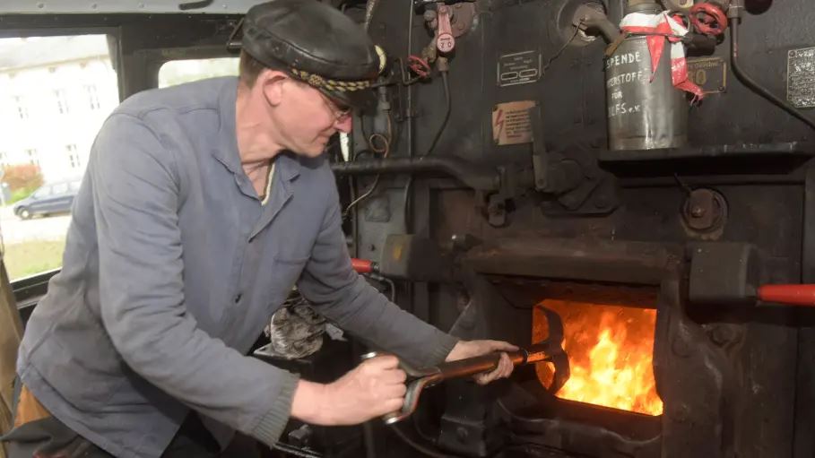 Besonders großer Andrang herrschte an dem Bahnsteig, wo die Dampflok aus dem Jahr 1942 abfuhr. Wie der Heizer Jens Berger und der Lokführer Ralf Pietzke erklärten, handelt es sich um eine Lok der Baureihe 50 der Firma Henschel aus Kassel. Dieser Typ war zur damaligen Zeit sehr verbreitet und wurde von den Nazis sowohl in Frankreich als auch im Osten für Transporte eingesetzt.