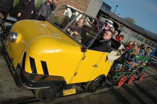 Marcel Geisler fuhr die Besucher auf seiner 26 PS starken Trabant-Draisine über das Bahngelände. |