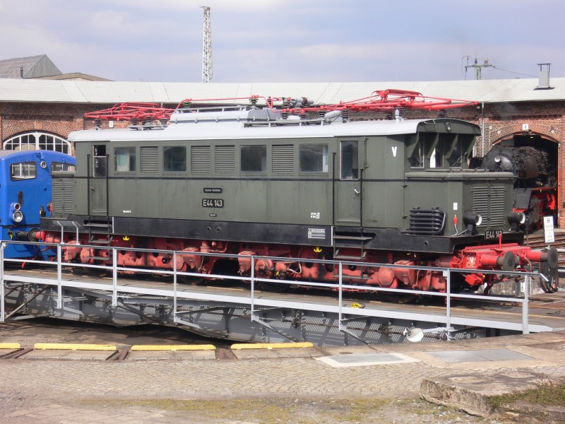 Elektrolokomotive E44 143| Hersteller: | Henschel / Siemens-Schuckert | | Typ: | E 44 | | Baujahr: | 1942 | | Fabriknummer: | 25384 | | Leistung: | 1.860 KW (2.529 PS) | | Vmax: | 90 km/h | | Status: | Ausstellungsstück |