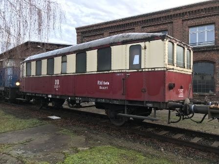 Da die Abstellmöglichkeiten in der Monumentenhalle inzwischen ausgeschöpft sind und sich gerade ein Kontakt zwischen unseren beiden Museen entwickelte, ergab sich die Möglichkeit eines Transfers. Da offenbar auch das Konzept des Historischen Lokschuppens Wittenberge die Verantwortlichen des Technikmuseums überzeugte, wurde eine Übergabe vereinbart. Damit ist es gelungen, das vermutlich letzte existierende Fahrzeug der Perleberger Kreisringbahn und damit ein wertvolles Stück Prignitzer Eisenbahngeschichte in die Region zurückzuholen. Wir danken dem Technikmuseum sehr herzlich dafür!