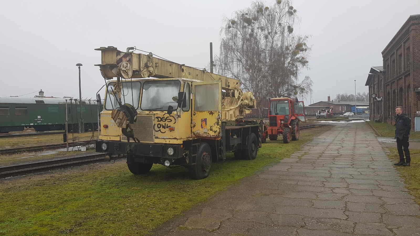 Wie Sie wahrscheinlich auch, hat uns der Winter in seinem eisigen Griff gehabt. Da kann man leider nicht besonders viel arbeiten, außer man findet einen temperierten Raum für die Arbeiten. Zum Glück ist unser Lokschuppen zwar nicht frostfrei, aber zumindest ist er nicht zugig, wenn die Türen und Tore geschlossen sind. Also haben wir unsere Arbeit im wahrsten Sinne nach innen verlagert. Eine große Baustelle ist im Moment die Herrichtung eines Mobilkrans, den wir neulich als Dauerleihgabe erhalten haben. Er hat die letzten Wochen draußen verbracht, wurde aber jetzt in unsere Werkstatt geschleppt. Die Kupplung und Bremsen sind hier zu erneuern sowie eine Kranprüfung vorzubereiten. Wenn die Temperaturen wieder steigen, soll er auch neu lackiert werden.