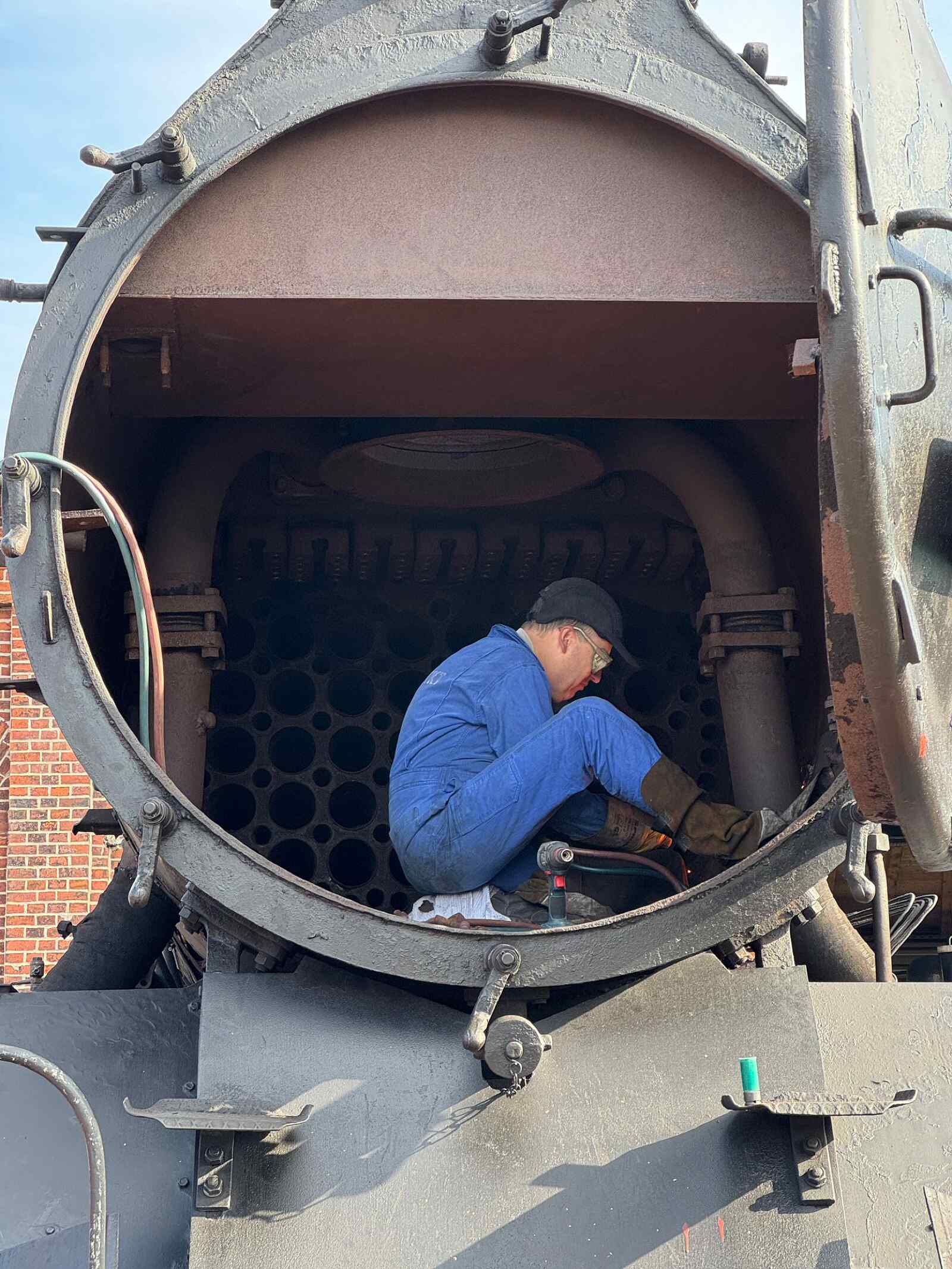 Zunächst muss jedoch der bisherige Kessel der Lok entfernt werden. Um ihn vom Fahrwerk der Lok abheben zu können, müssen zunächst alle Anbauteile und das Führerhaus der Lok entfernt werden. Dazu müssen sämtliche Armaturen und Bedienelemente aus dem Führerhaus ausgebaut und alle Rohrleitungen und Nebenaggregate, die mit dem Kessel verbunden sind, abgebaut werden. In dieser Phase befinden wir uns gerade. Aktuelle Bilder vom jüngsten Arbeitseinsatz dazu sind hier angehängt. Demnächst geht es weiter. Wir halten Sie hier auf dem Laufenden.